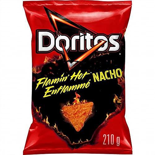 Introducing new DORITOS FLAMIN' HOT Nacho Flavored Tortilla Chips. The nacho cheese you love, amped up with fiery heat. The Original Now Hot. Nacho Cheese Gets Lit! ! . Made in Canada. Great for Munching on while watching Movies! . Imported from Canada