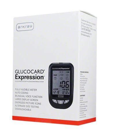 Glucocard Expression Meter Kit. Includes Meter, Case, Manual,10 test strips, 10 lancets, lancing device and a control solution. Individual boxes of test strips sold separately. This meter will only work with Expression model strips, any other brand or style will not work.