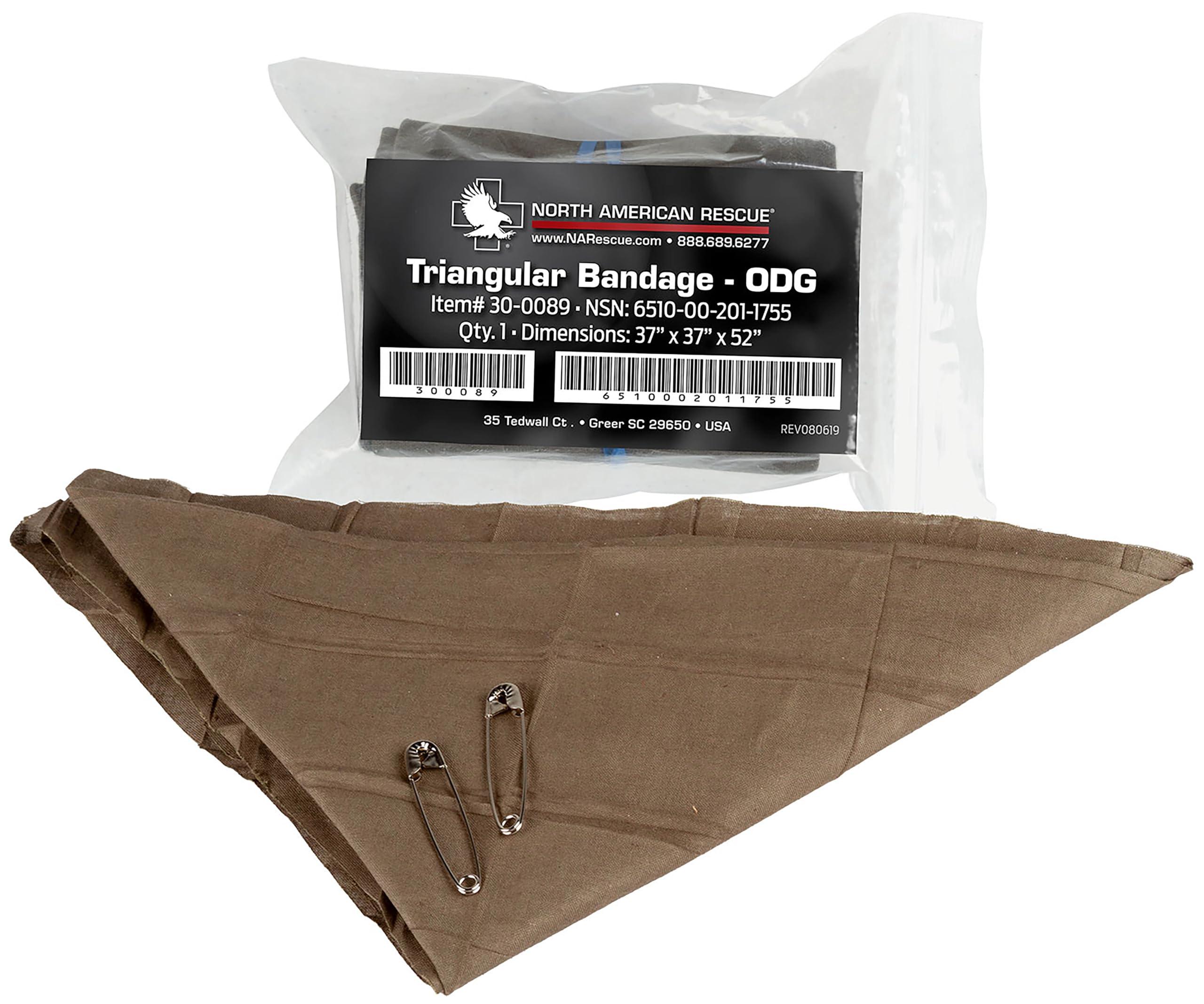 The NAR Triangular Bandage is used for the bandaging of wounds, the immobilization of fractures and dislocations, and as a sling for the support of an injured part of the body. Packaged for low cube space, the North American Rescue Triangular Bandage is made of muslin cloth and comes with two safety pins to aid in bandage configuration and securing. Easily fits into any first aid kit or pocket and is a staple for basic bandaging or splinting.