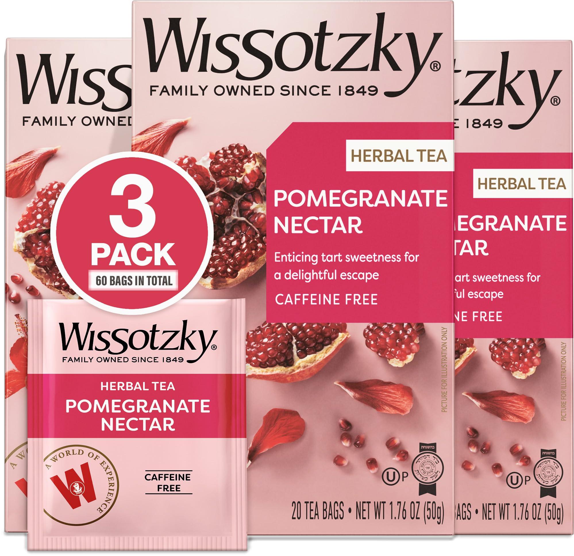 - DELIGHTFUL BLEND - Immerse yourself in the harmonious blend of pomegranate, hibiscus, blackberry leaves, and rosehips, creating a delightful infusion that tantalizes your taste buds with every sip. Wissotzky Pomegranate Tea is certified Kosher for year round use including Passover.