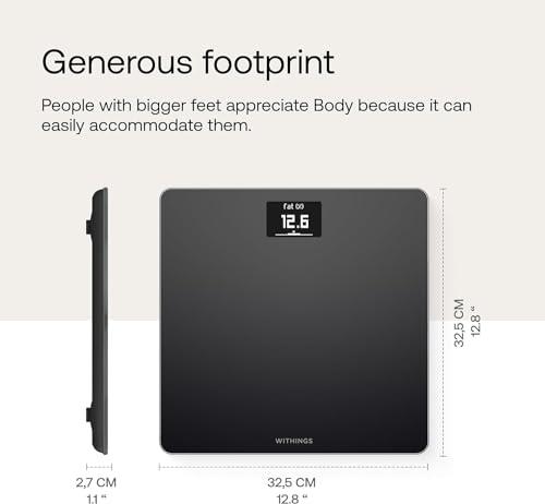 - #1 WORLDWIDE - WITHINGS IS THE INVENTOR OF THE SMART SCALE | ADVANCED WEIGHT MONITORING - See progress during each weigh-in with the weight trend screen to help you see the big picture, plus BMI to know if you are on the right track..Compatible devices iPhone (4S or higher) iPod Touch (5th generation or higher) iPad (3rd generation or higher, as well as any iPad Mini) Bluetooth Low Energy compatible Android devices Compatible OS iOS 8 or higher Android 5.0 or higher For body fat measurements.INCLUDES : Body Black, Alkaline cells already installed, Quick installation guide (English, French, German, Italian, Spanish), Carpet feet
