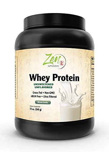 Zen Supplements - Organic Grass Fed Whey Protein 19g Per Serving Keto Friendly - Unflavored 12 Oz-Powder